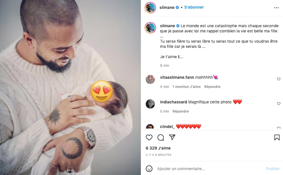 Mais ce nest pas tout. Sil partage souvent des photos de son bébé Slimane fait très attention à ne pas dévoiler son visage. Slimane dévoile le prénom de sa fille. Après des mois dattente cest à travers un tendre cliché quil l.
